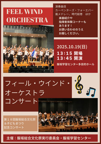 福島市飯坂学習センターで開催される「第18回飯坂総合文化祭&子どもまつり」の最後を飾る「記念コンサート」に、当団が出演することになりました。